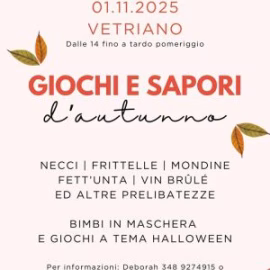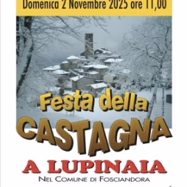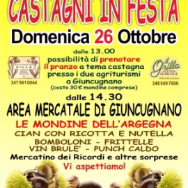 Dalle ore 14.30 festa della castagna con degustazione prodotti tipici per le vie del centro Tutto accompagnato da vin Brulè e le torte speciali di farina di neccio In caso di pioggia la manifestazione si terrà la domenica successiva , ...Festa d’autunno2:30 pm - 7:00 pm